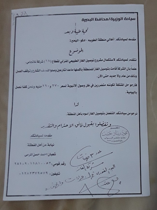 جاء ذلك عقب الطلب الذي تقدم به النائب إلى الدكتورة چاكلين عازر محافظ البحيرة، استجابةً للاستغاثة المقدمة من أهالي المنطقة، والذين عانوا من توقف أعمال التوصيل لأكثر من عام رغم شمول المنطقة بالخطة، حيث توقفت الأعمال عند منتصف شارعين فقط، مما تسبب في معاناة كبيرة للأهالي في ظل ارتفاع أسعار أسطوانات البوتاجاز التي وصلت إلى 270 و300 جنيه.
