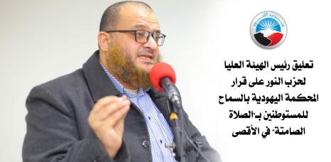 تعليق رئيس "عليا النور" على قرار المحكمة اليهودية بالسماح للمستوطنين بـ"الصلاة الصامتة" في الأقصى
