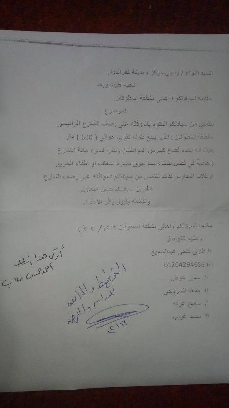 "حمدي" يحصل علي موافقة برصف ٦٠٠ متر بالطريق الرئيسي بـ"اسطوفان".. ويؤكد سنتابع العمل أولاً بأول