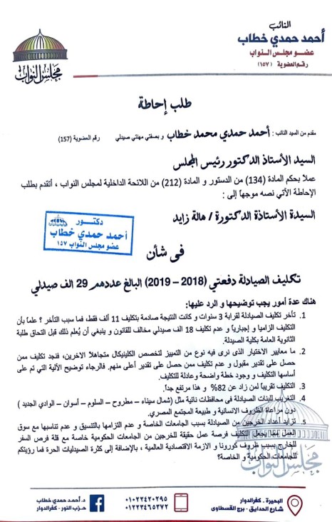 استجابة لطلب "حمدى" وبعض النواب تعين لدفعتى الصيادلة لعام 2018 و2019