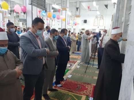 "حمدى" يؤدى صلاة عيد الفطر برفقة "رئيس مجلس المدينة" وسط ابناء المدينة