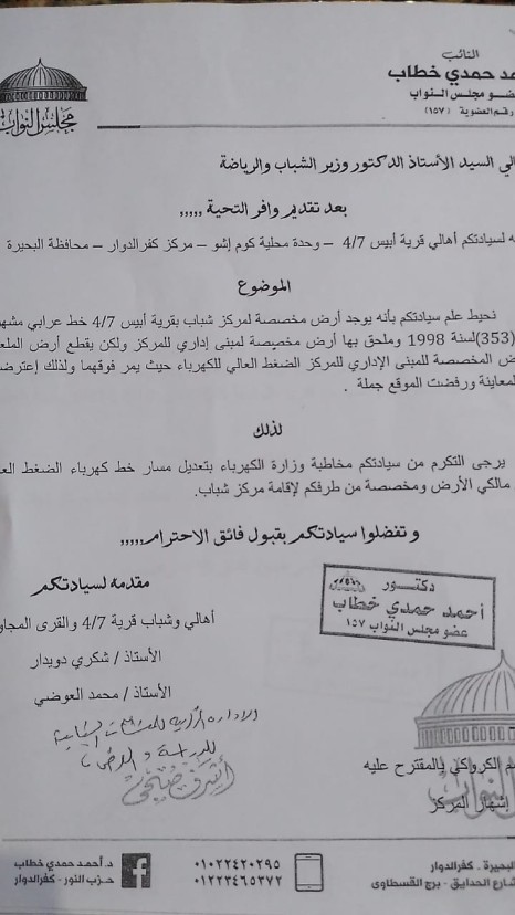 بالمستندات| "حمدي": طلبات عاجلة لـ"وزير الشباب والرياضة" بإقامة 3 مراكز شباب بأبيس