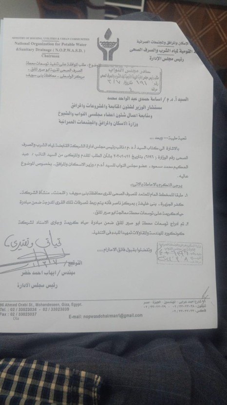 " مسعود" يحصل على موافقة بإدراج توسعات محطة الصرف الصحي بأبوصير ضمن مبادرة حياة كريمة