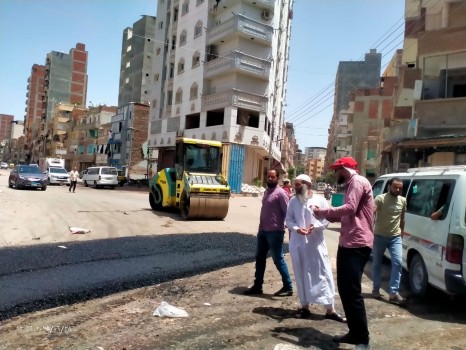 "حمدي" يتابع أعمال رصف شارع الخليج المجاور لمدرسة المستقبل الخاصة بكفر الدوار.. صور
